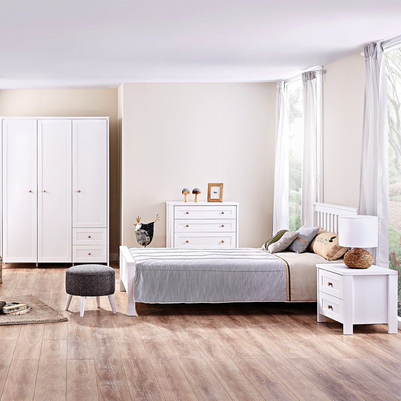 Изработен от висококачествени материали, този продукт е не само стилен, но и изключително устойчив. Комбинацията от белия корпус и красивите естествени дървени дръжки добавя топлина и характер, идеални за всеки интериорен стил. Дръжките предлагат удобен достъп до пространството за съхранение и допълват общата естетика на артикула.