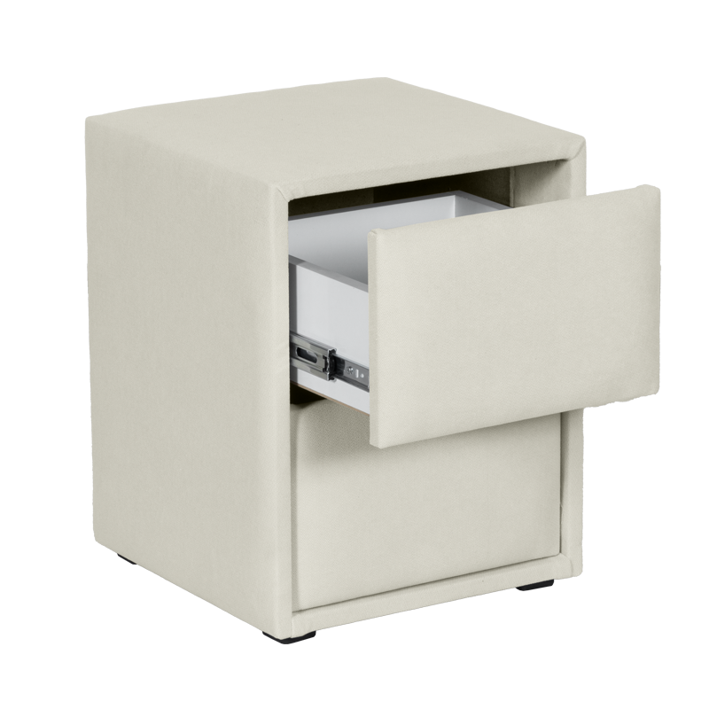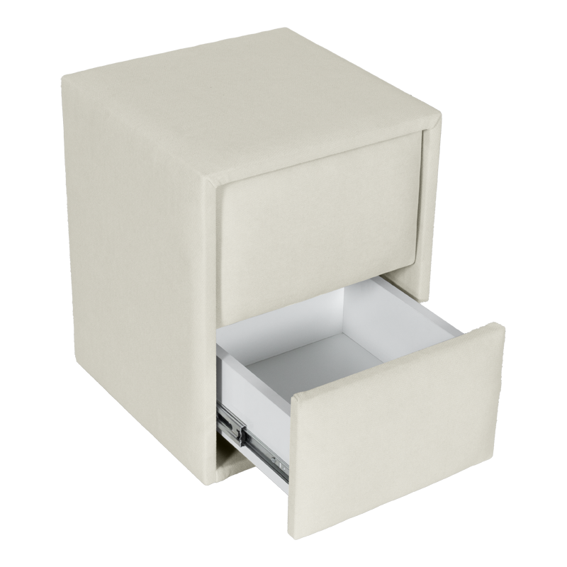 Нощното шкафче в светлосив цвят е стилен и практичен елемент за всяка модерна спалня. То е тапицирано с качествена дамаска и изработено от устойчив корпус, осигуряващ издръжливост и удобство в ежедневието. Оборудвано с едно или две чекмеджета с механизъм за плавно затваряне и удобни дръжки, шкафчето предлага функционално съхранение за лични вещи и аксесоари. Компактният му размер го прави идеален избор за поставяне до леглото. Пълна информация за размерите и характеристиките може да намерите в таблицата в полето „Техническа информация“.
