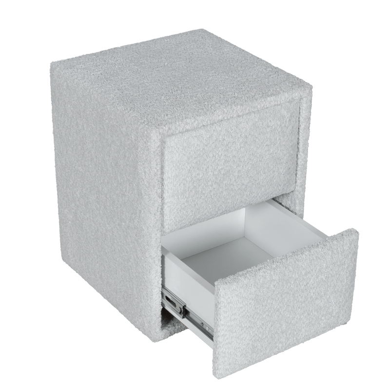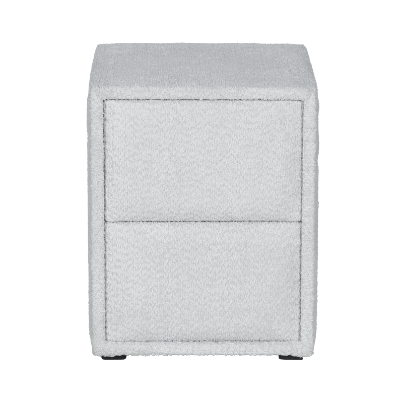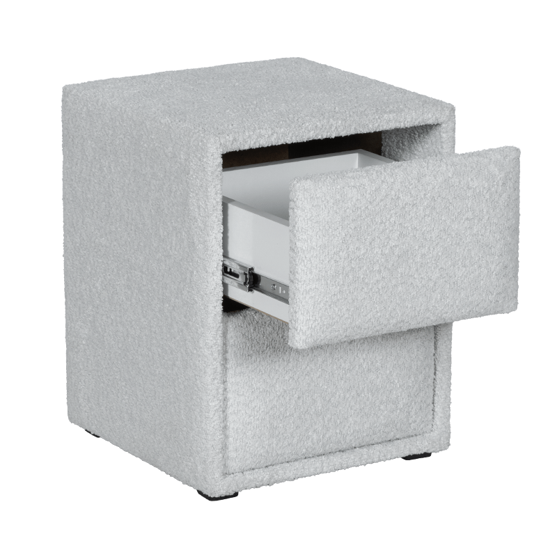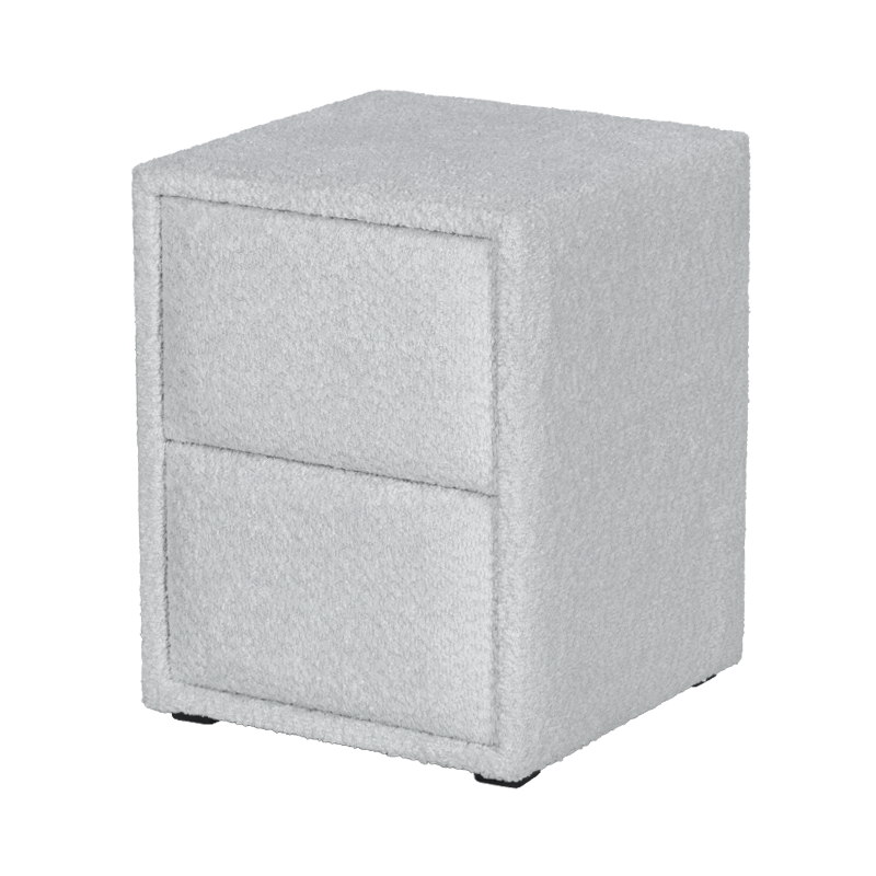 Със своите две просторни чекмеджета, шкафът предлага удобство при съхранение на лични вещи, книги или аксесоари, като същевременно осигурява лесен достъп до необходимото. Изработен с внимание към детайла, който съчетава минимализъм и функционалност. Повърхността от текстурирани материали добавя допълнителна дълбочина и интерес към визията, придавайки уют и стил.