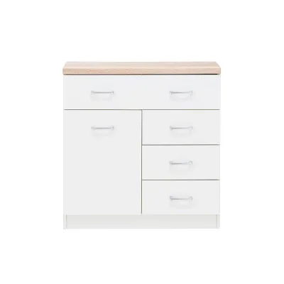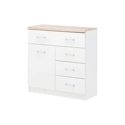– Комбинираният скрин предлага достатъчно място за съхранение с една отваряема врата и пет чекмеджета.
