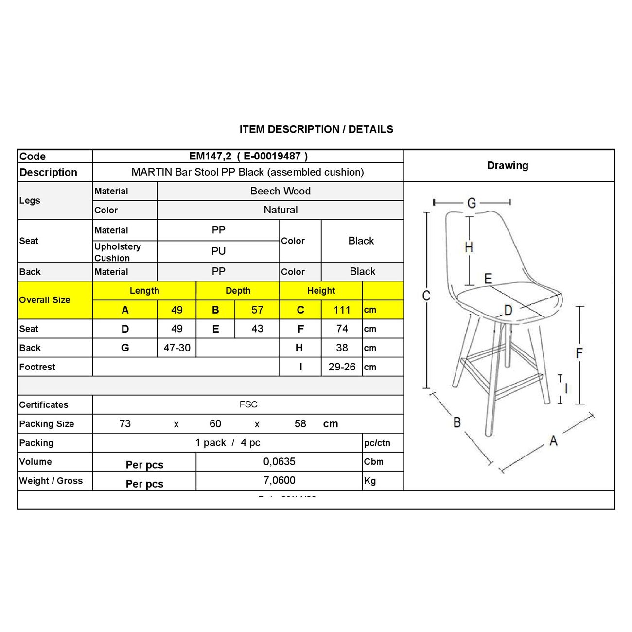 Стабилната конструкция от трайни материали гарантира дълготрайна употреба, като дървената основа придава естествена топлина и стил на вашия интериор. Производственият процес спазва най-високите стандарти за качество, предоставяйки ви здравина и надеждност. Бар столът е идеален както за домашни, така и за комерсиални пространства, включително кухни, барове и ресторанти.