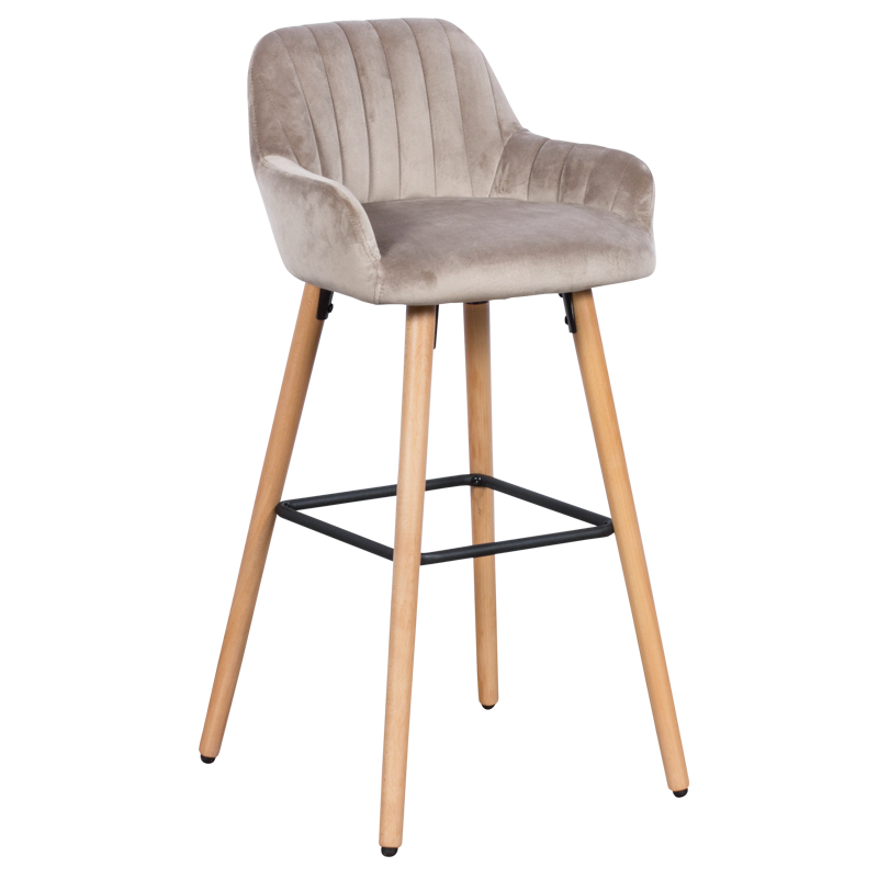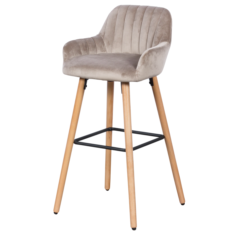 3082 е висок бар стол с удобна седалка, наподобяваща кресло. е изработен с мека дамаска и здрави крака от бук. информация за размерите и характеристиките на модела ще намерите в таблицата в таб/поле информация“.