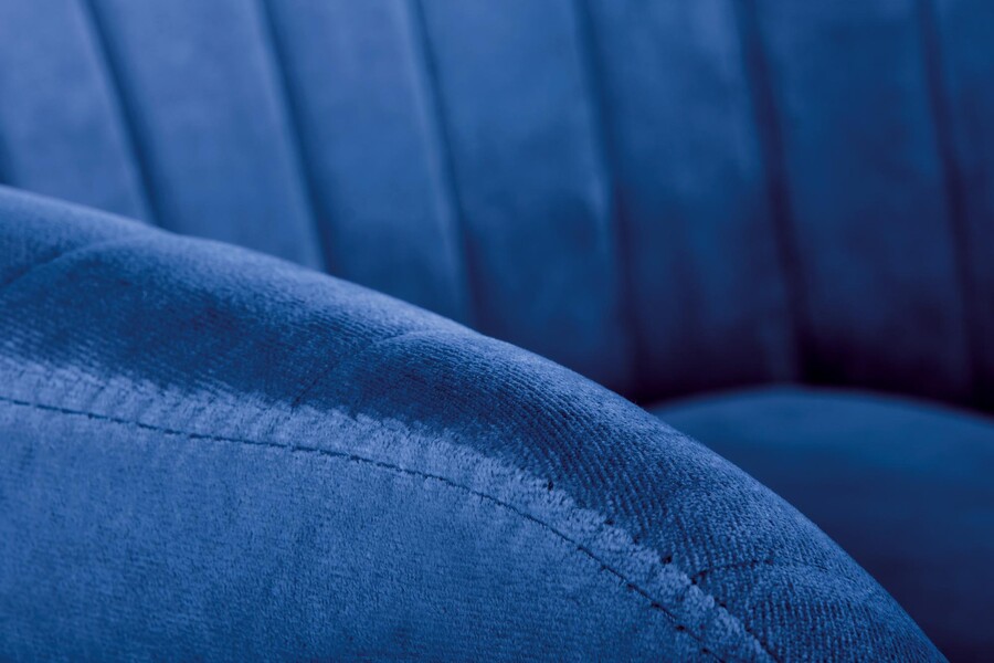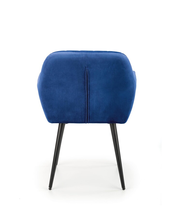 Стол – е мебел, който съчетава мира на обикновен дизайн с смелостта на интензивния цвят. Тази комбинация го прави оригинален и привлекателен. Столът може да бъде добавен към всяка подредба, към която ще съвпада, независимо от стила, използван в него. Той ще се комбинира добре както с класическия, така и с модерния декор. Гърбът на стола отстрани преминава в подлакътниците. Той е покрит с тъкан, изрязан с вертикални линии, което прави мебелите по -елегантни. Седалката е разположена ясно отрязана от останалата част от възглавницата, като се използва по -удобна мебел. Използваемата част е поставена на четири, дълги, тънки и леко наклонени крака, което прави мебелите стабилни. Краката на стола са изработени от черна стомана, богата на прах, но използваемата част (седалка, облегалка и подлакътници) беше покрита с тапицерия, изработена от изключително елегантна кадифена тъкан в интензивно тъмносиньо.