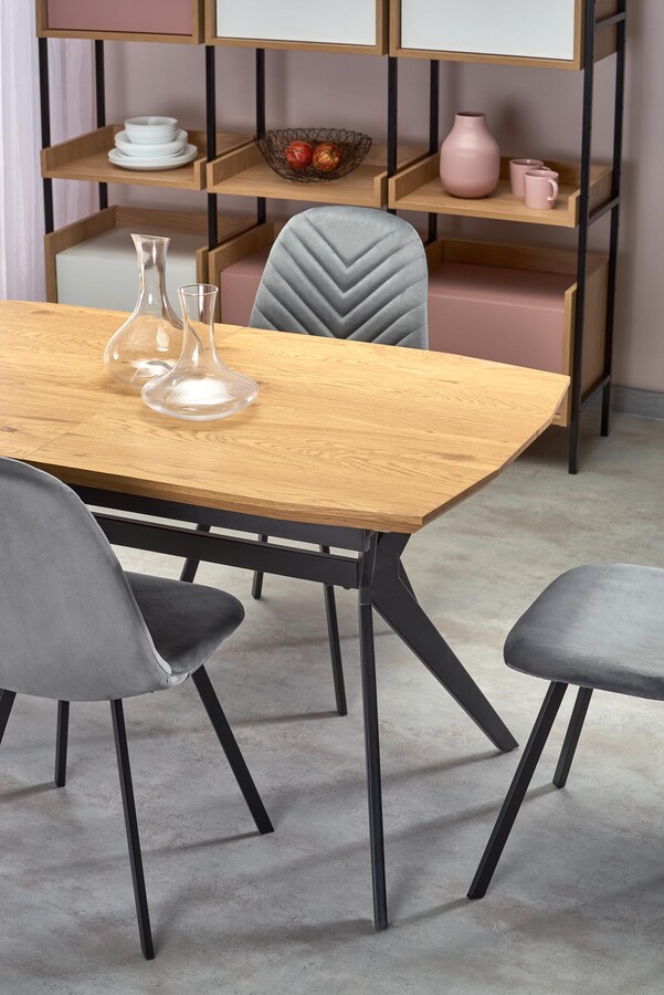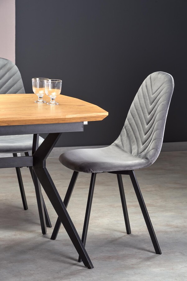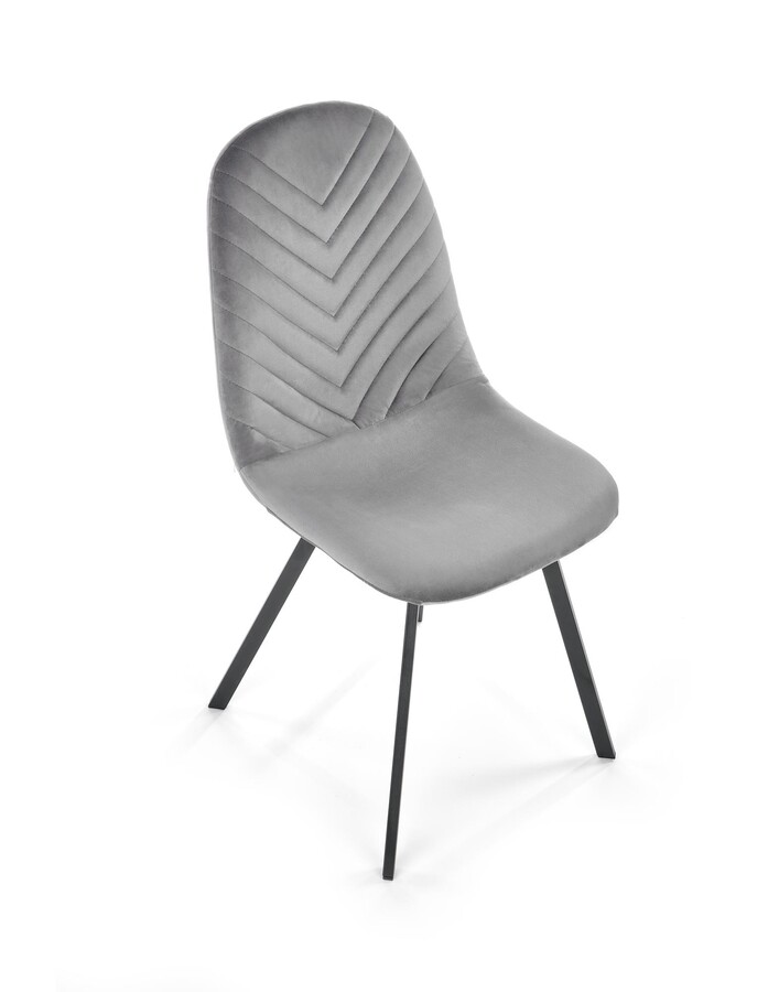 Стол – Велурният стол е комбинация от елегантност, простота и функционалност в интересно издание. Облексата на мебелите със седалката беше покрита с материя за приветствие в сив цвят. Вътрешността на облегалката също е украсена с шевове, които добавят елегантност и характер. Четири метални крака в черно оставят седалката. Те добавят оптична лекота и модерен характер към мебелите. Столът е чудесно предложение за стилна кухня, трапезария или хол!