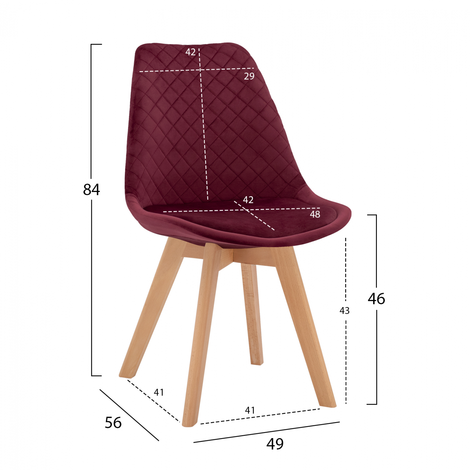 Краката са изработени от естествено дърво, което придава на модела стабилност и устойчивост. Светлият дървен цвят на краката прекрасно контрастира с богатия цвят на текстила, създавайки хармонична и балансирана визия. Дизайнът с четири разгърнати крака осигурява надеждна основа и стабилност.