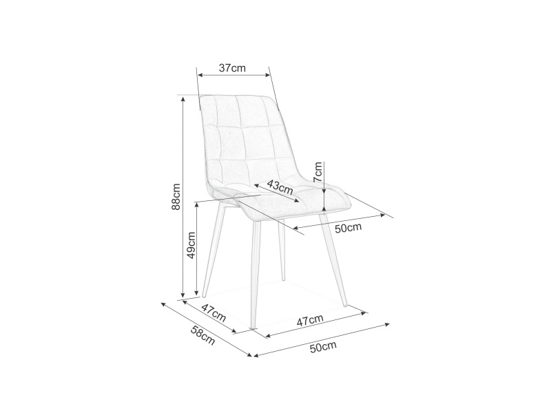 – ширина: 51 см, – дълбочина: 44 см, – височина: 89 см, – седална височина: 49 см,