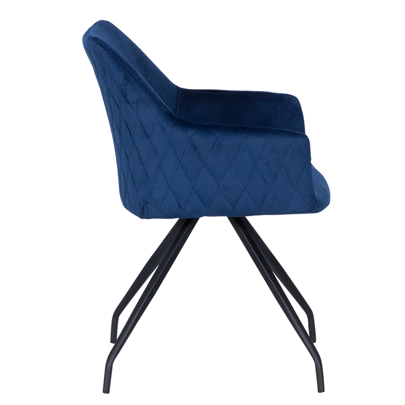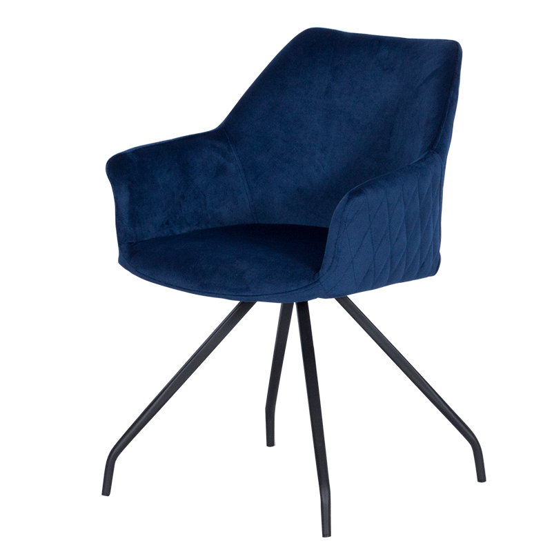 Открийте елегантността и комфорта с този луксозен трапезен стол, идеално допълнение към всяка съвременна трапезария. Този стол впечатлява с изящния си дизайн и класически кралско син цвят, който ще добави нотка на изисканост към вашия интериор. Меката тапицерия от висококачествена материя осигурява максимален комфорт, докато солидната конструкция гарантира дълготрайна издръжливост. Стабилната метална основа придава модерен акцент и осигурява сигурност и устойчивост.
