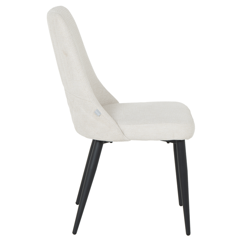 стол съчетава елегантен силует с усещане за комфорт. с висококачествена дамаска в нежен цвят, той внася светлина и уют във всяко помещение. профил на облегалката и меката седалка осигуряват удобство при продължително седене, а металните крака със стабилно прахово покритие гарантират устойчивост и здравина. както за модерни, така и за класически интериори. информация за размерите и характеристиките на модела ще намерите в таблицата в таб/поле информация“.
