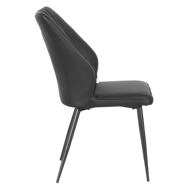 Фините метални крака, които също са в непреходен черен цвят, осигуряват невероятна стабилност и допълват елегантния дизайн на седалището. Тази комбинация от материали и цветове прави стола не само практичен, но и естетически привлекателен избор за тези, които търсят съвременен елемент за своя дом или офис.