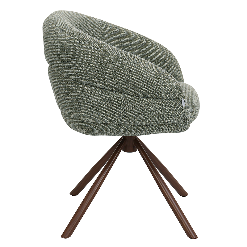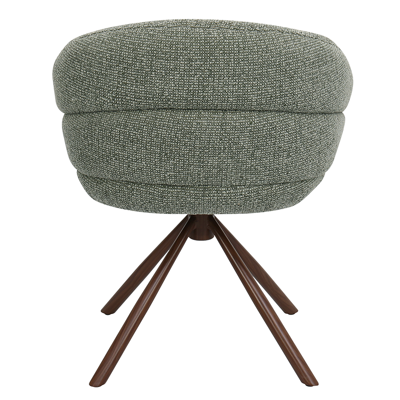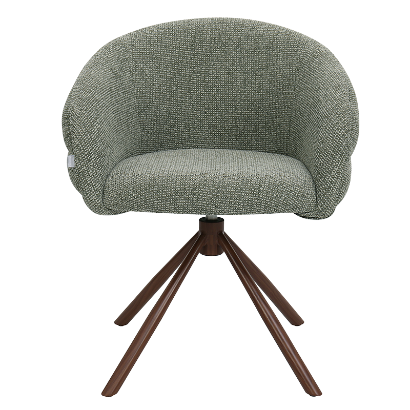 Трапезен стол привлича вниманието с елегантен силует и мек обгръщащ дизайн. Тапицерията от висококачествена дамаска и комфортните подлакътници създават усещане за уют при всяко сядане. Моделът разполага със стабилна въртяща се основа от праховобоядисан метал която съчетава стил и функционалност. Подходящ както за трапезарията така и за кът за работа или срещи. Пълна информация за размерите и характеристиките на модела ще намерите в таблицата в таб/поле „Техническа информация“